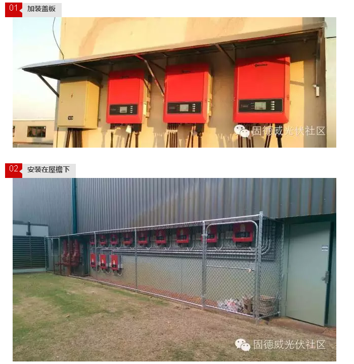 綜上,小固得出以下結論:具有IP65防護等級的逆變器您可以放心安裝在室外,但是一定要通過給逆變器加裝蓋板,或安裝在屋檐下,或安裝在支架上(組件下方)等三種方案,保證避免陽光直射,減少各種不利因素的影響,保障光伏系統全生命周期的投資收益。