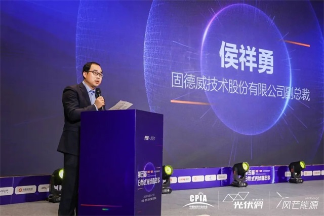 固德威技術股份有限公司副總經理侯祥勇為大會致歡迎辭。他表示:在國家30?60雙碳目標和鄉村振興戰略的雙重利好下,分布式光伏迎來新一輪快速發展周期,行業格局變幻、熱度空前高漲。在分布式光伏屋頂“整縣推進”與工商業電價改革的加持下,屬于分布式光伏的黃金時代已經到來!