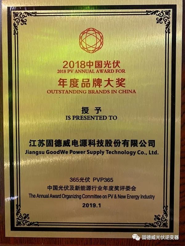 面對糟糕的外部環境、新政的沉重打擊,固德威表現出極強的風險控制能力,一手力拓海外市場,一手狠抓國內市場,堅持科技創新、嚴控品質,發揮儲能逆變器的領先優勢,在極其困難的2018年依然保持穩步前行,固德威榮獲“2018中國年度品牌大獎”可謂實至名歸。