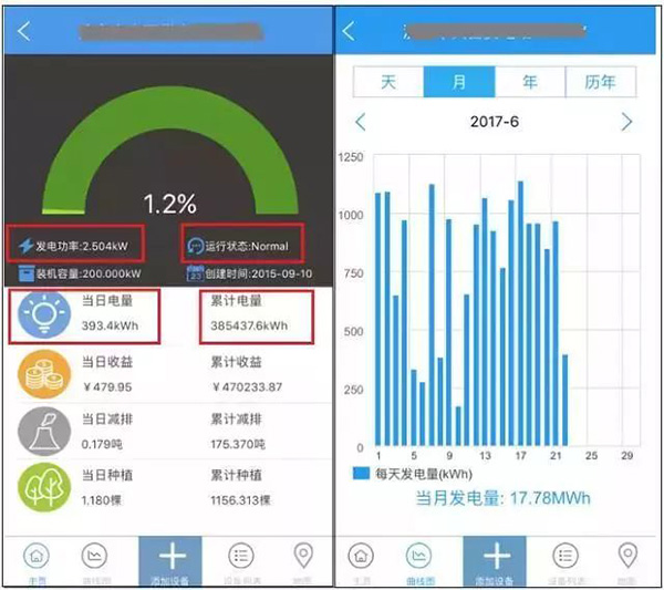 ②另一種是遠程查看,一般安裝商都會幫業主配置好監控,業主可通過手機APP來查看自己的電站。