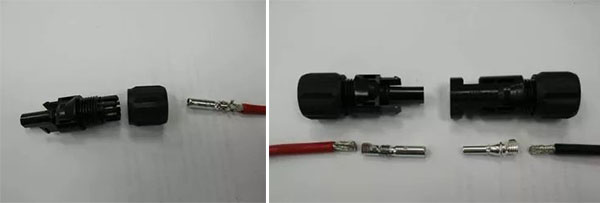 組件接入逆變器直流側的端子內部金屬部分要用接線鉗卡牢,組件輸出端子和逆變器的端子必須接觸牢固,不松動。