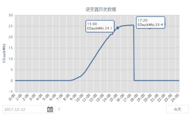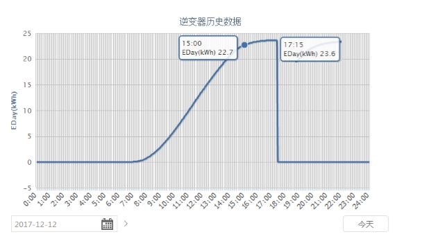圖7:上海地區(冬至日,15:00之前發電量22.7度,當日發電量23.6度)