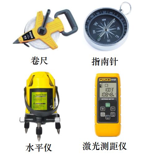 工具:卷尺、指南針、激光測距儀、水平儀、紙筆。