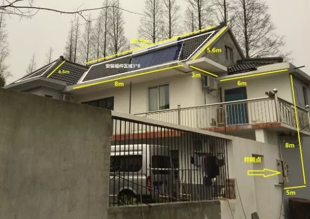 ·???????? 測量組件安裝的面積,注意規(guī)避陰影遮擋,女兒墻、熱水器、周邊建筑(以及規(guī)劃)等對組件的遮擋。