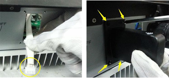 在墻上或支撐架上打孔,把背板固定。(電鉆、螺絲刀),再把逆變器掛到背板上。