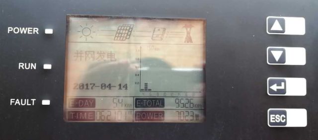 光照良好的時(shí)間,接上直流端子,合上交流開關(guān),查看逆變器是否能夠并網(wǎng)發(fā)電。