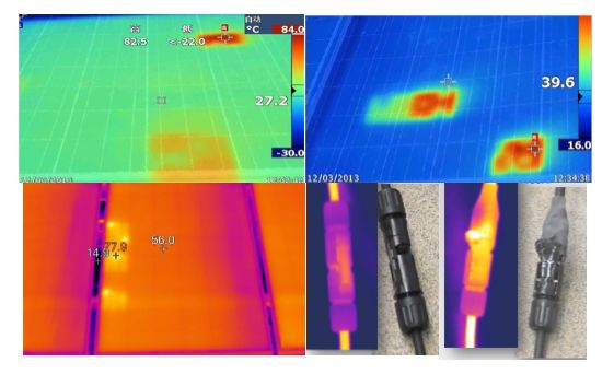 紅外熱成像儀也是檢測組件缺陷的設(shè)備,它通過熱成像不同的顏色反映組件不同的溫度。熱成像儀還可以用來檢查逆變器、連接器等。