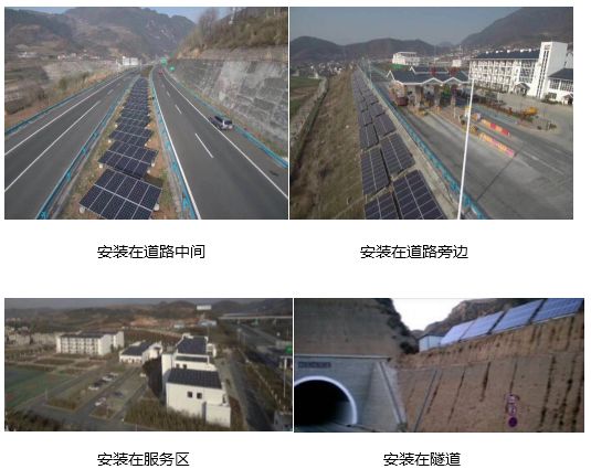 光伏一般安裝在高速公路的服務(wù)區(qū)、道路中間或兩旁、隧道處或者直鋪在公路上。