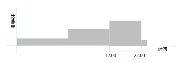 峰谷電價的結構大致如下圖所示,17:00 - 22:00為用電高峰期: