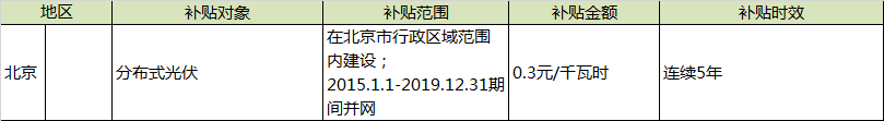 補貼對象和金額:2015年1月1日至2019年12月31日期間并網發電的分布式光伏發電項目,按照實際發電量給予每千瓦時0.3元(含稅)的獎勵,連續獎勵5年。