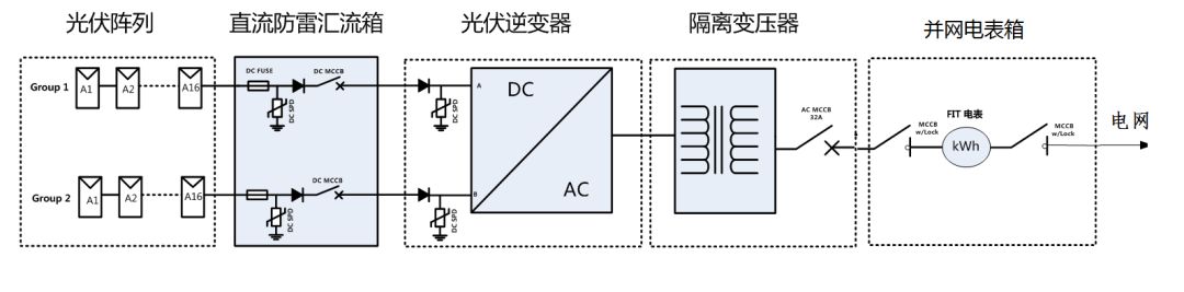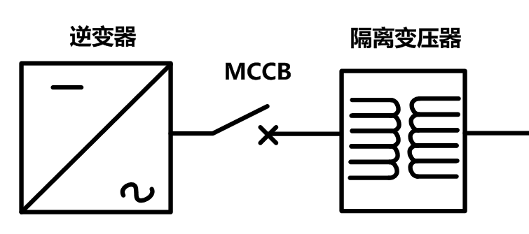 3、需要在逆變器輸出端配置隔離變壓器,以防止直流電可能從光伏系統注入配電系統的情況,如下圖所示: