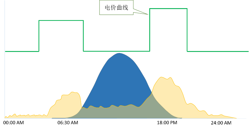 此應用場景旨在提高光伏系統的自發自用率:當光伏系統發電量充足時,生產的電能將優先供給負載,多余部分存儲在電池中,以便在光伏系統發電不足時通過電池放電滿足負載需求。以此為目的設計儲能系統時,需要關注每日家庭用電的總量,以確保光伏發電量能夠滿足用電需求。
