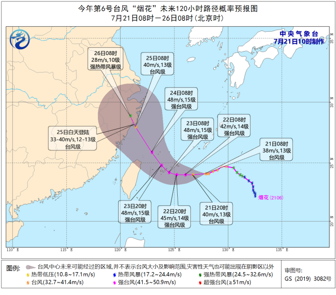 此次河南暴雨還受到臺風“煙花”的部分影響,據中央氣象臺預計,“煙花”強度逐漸加強,最強可達強臺風級(14-15級,42-48米/秒),預計“煙花”將在25日前后登陸浙閩沿海,華東沿海地區、東海、黃海南部將出現強風雨,浙江、福建、上海、江蘇、臺灣等地部分地區大到暴雨,部分地區大暴雨,局地特大暴雨。