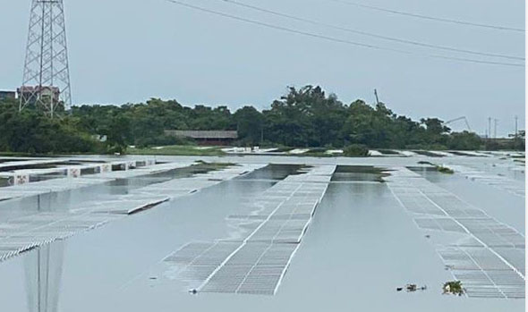 對于戶用和工商業斜屋頂光伏項目,屋頂本身排水能力強,一般不會出現積水過多的情況;部分組件下沿較低,有可能被雨水浸泡,或者雨水沖刷泥土導致組件失衡;對于大型地面電站,大量的降雨可能導致水位升高,淹沒電纜、組件、箱變及逆變器的設備。