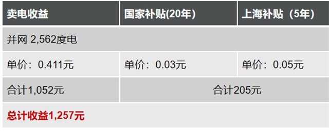 截止至2021年,戶用光伏的國家補貼為0.03元/千瓦時,補貼20年;上海市級補貼為0.05元/千瓦時,補貼5年。
