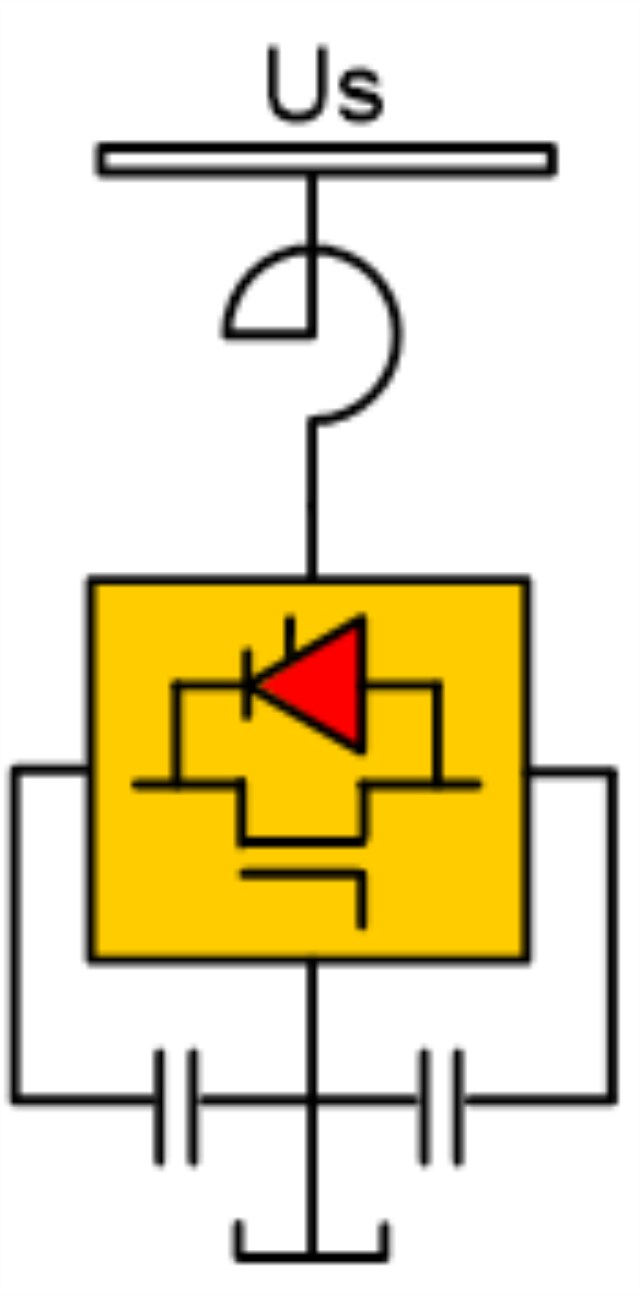 SVG型無(wú)功補(bǔ)償裝置是一種采用IGBT全控型有源型無(wú)功發(fā)生器,不再采用大容量電容器和電抗器,而是通過(guò)電力電子器件開關(guān)功能實(shí)現(xiàn)無(wú)功能量的轉(zhuǎn)換,能動(dòng)態(tài)發(fā)出和吸收無(wú)功功率,SVG功率模塊是由多個(gè)IGBT元器件與電容器串并聯(lián)而成的橋式電路,通過(guò)電抗器并聯(lián)在電網(wǎng)上。電抗器能有效的抑制SVG開關(guān)電路產(chǎn)生的諧波,使SVG輸出的無(wú)功功率無(wú)階躍波動(dòng)更加平滑,防止電流沖擊發(fā)生故障。SVG原理示意圖如下所示: