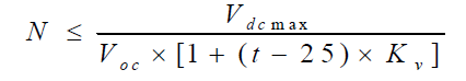 在考慮溫度系數的前提下,接入的組串的最大電壓要小于逆變器的最大直流輸入電壓。即: