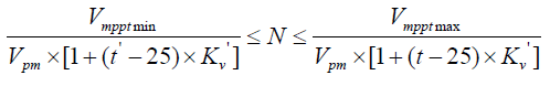 Vmpptmin、Vmpptmax分別為逆變器最小工作電壓和最大工作電壓。