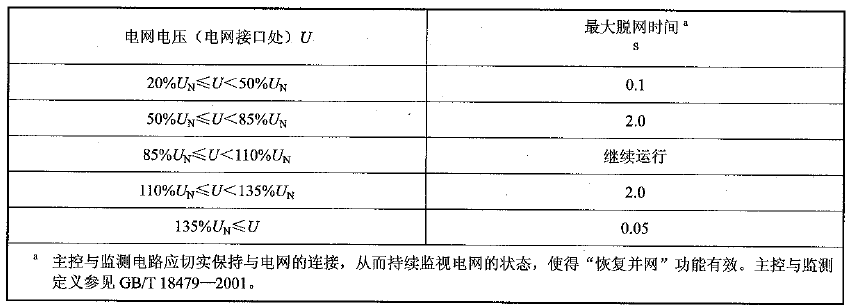 并網標準中有對光伏逆變器交流側異常電壓響應時間的具體規定,規定如下: