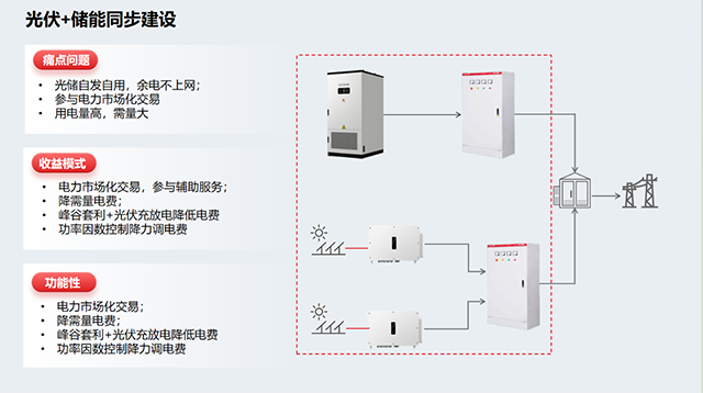 3.優化調度:光儲系統出力可控、多場景模式切換。最終目的就是通過峰谷套利、輔助服務、減少設備容量、需量電費管理等提高項目收益,縮短項目投資回收期、增加抗風險能力。