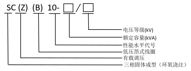 S代表三相,11代表性能水平,400代表變壓器容量為400KVA,10代表變壓器一次側(cè)電壓為10KV。