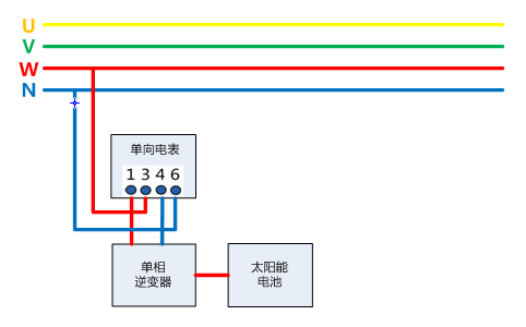 圖7:余電上網電表接入方式(光伏220V,負載220V)